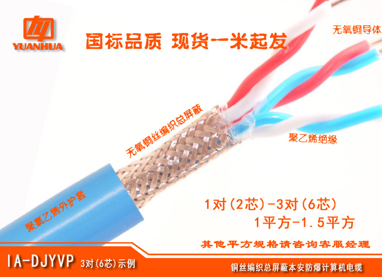 IA-DJYVP 聚乙烯绝缘对绞铜线编织总屏蔽聚氯乙烯护套本安防爆计算机电缆