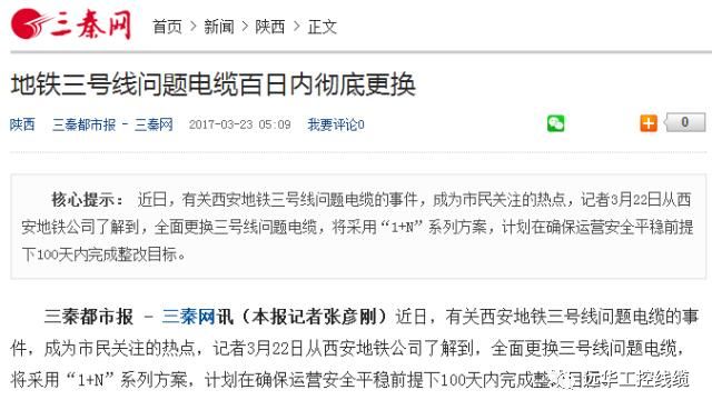 当时的媒体公开报道中提到:记者3月22日从西安地铁公司了解到,全面更换三号线问题电缆,将采用“1+N”系列方案,计划在确保运营安全平稳前提下100天内完成整改目标。