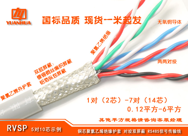 | RVSP对绞双屏蔽系列: 优质原包PVC原料,全挤压工艺,外观圆整,线芯对绞,1层铝箔屏蔽+1层镀锡纯铜屏蔽网覆盖屏蔽(密度≥80%),主用于RS485网络布局,信号传输稳定。导体、屏蔽网为无氧纯铜细丝,线体印有米标,柔软易于铺设。当前有大长度常备库存,1米可发,1米可发。详情请与客户经理联系,022-28316616,24小时随时在线。 |