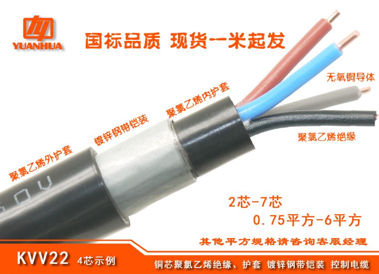 KVV22 铜芯聚氯乙烯绝缘聚氯乙烯护套钢带铠装